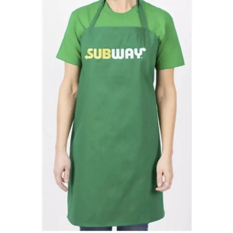 Be ready to cook in style with this full green Subway apron. Made of a comfortable and durable cotton blend material, this apron is perfect for both men and women. The embroidered logo adds a touch of elegance to the solid pattern.