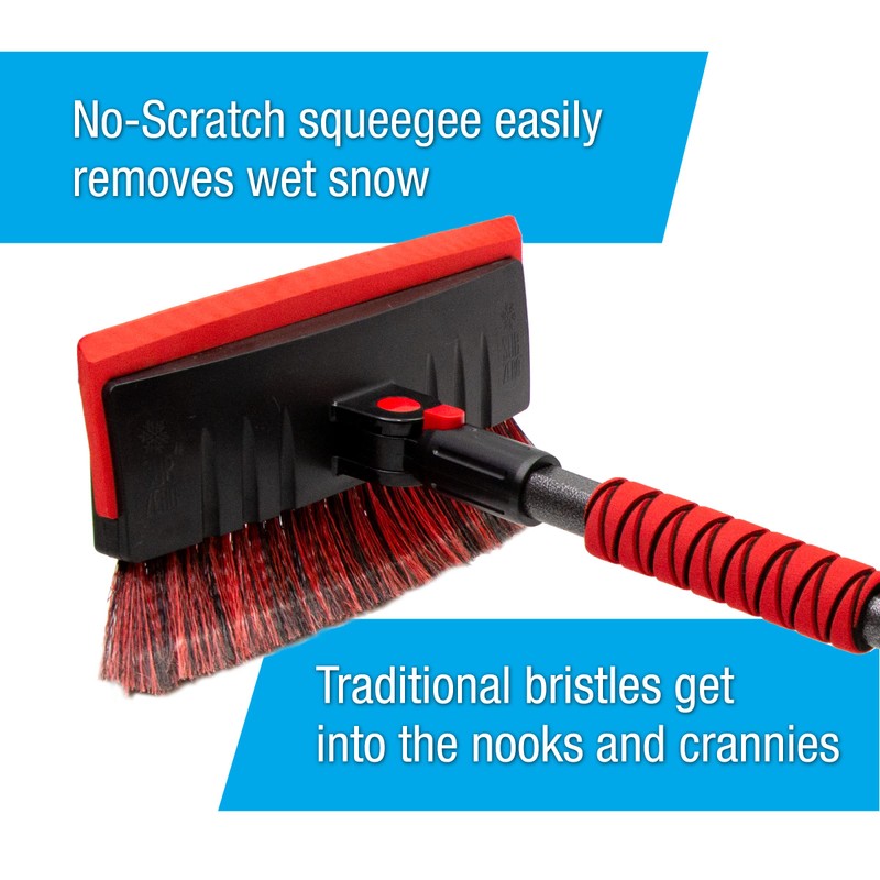 - Triple action brush head features EVA foam to remove the deepest snow