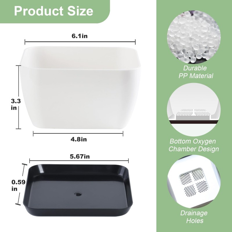 Succulent Pots 6 Inch Shallow Herb Planters with Drainage Hole - 4 Packs Cactus Planter for Home Office Garden Plants Pot Present - Plants Not Included (Off White)
