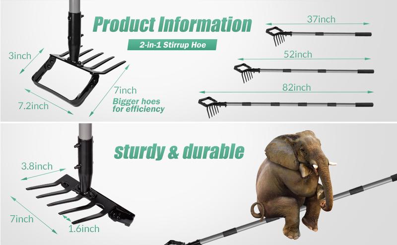 Suchtale Stirrup Hoe and 5-Tines Rake, Action Hoe for Weeding, Hula Hoe Cultivator for Loosening Soil - SIZE: 82inch