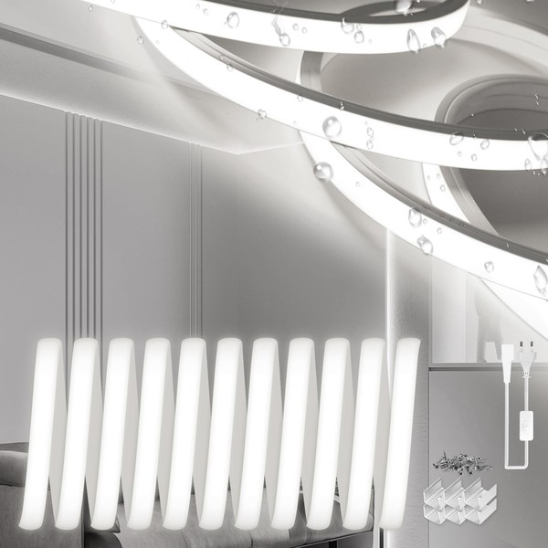 SUCIKORIO Neon LED Strip 5 m, Silicone Waterproof Fireproof IP65 Neon LED Strip White 6000 K 10 mm LED Fairy Lights Outdoor 230 V Flexible DIY Light Strip with Power Supply for Indoor Outdoor Decoration