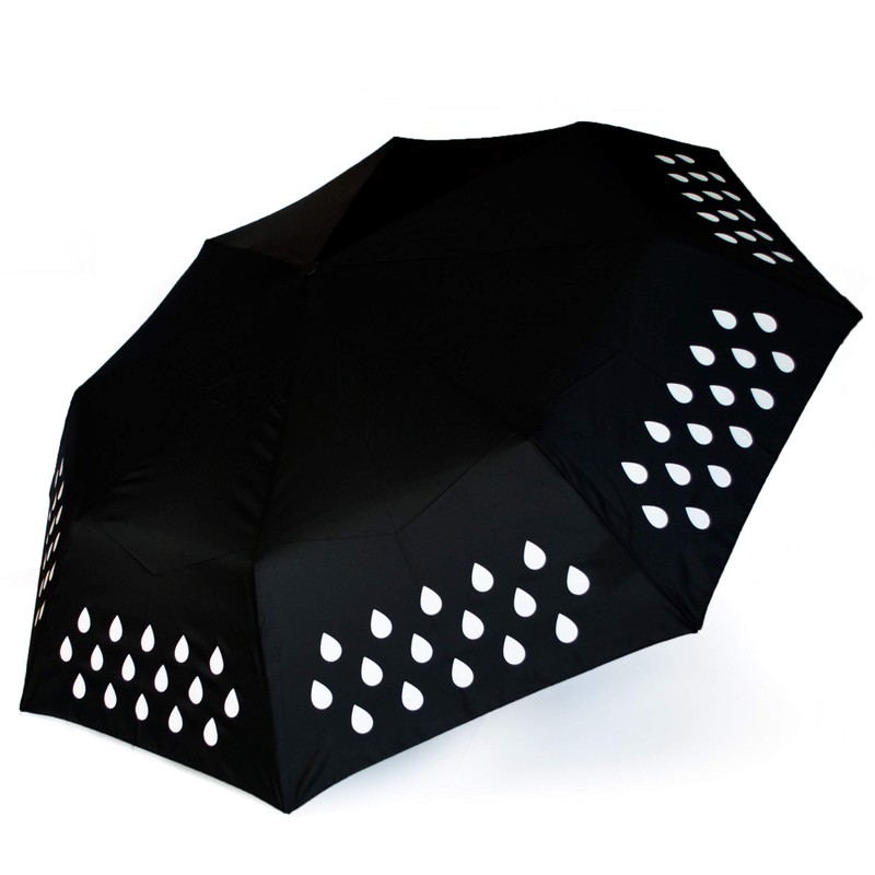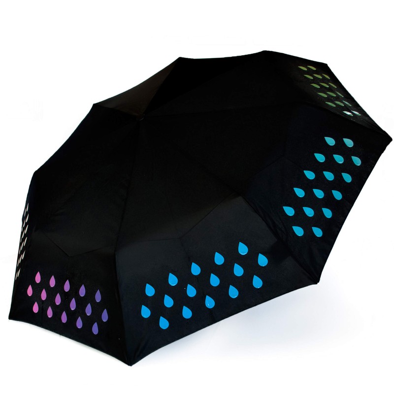 • A compact umbrella like no other! Watch the raindrop pattern bloom into full color as it gets wet & watch it change back to white as it dries. Enjoy a new rainbow every time it rains!