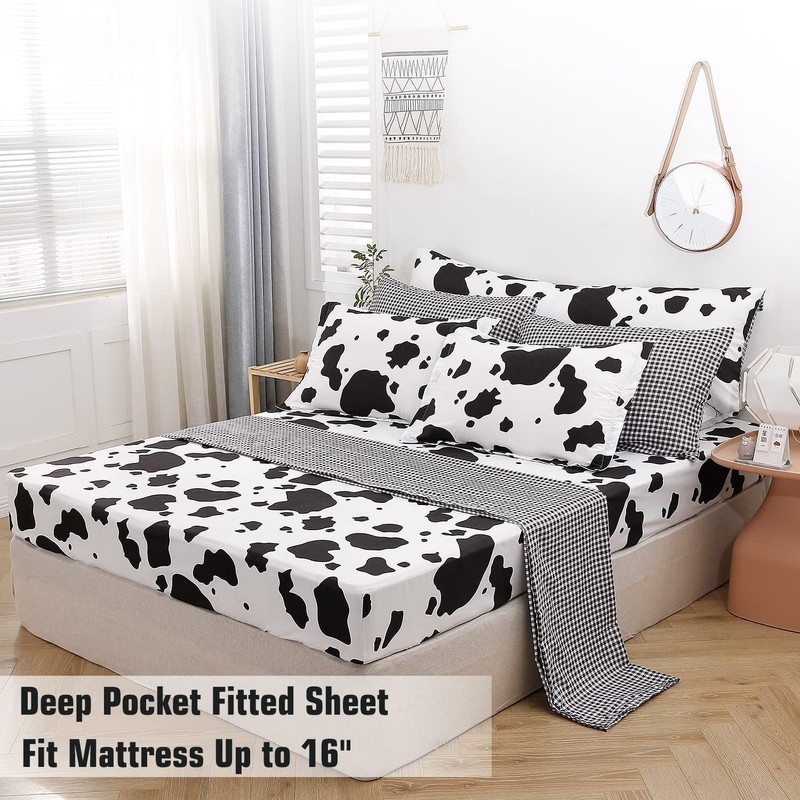 - Fashion Bedroom Bedding Decor: All-around elastic 16" deep pocket fitted sheets and the plaid flat sheet in the cow comforter set, gives the bed a stylish look. Matching with beautiful envelope pillowcases, plaid pillow shams and luxury body pillowcase, perfectly matches your bedroom decor, and makes your room look more elegant and gorgeous.