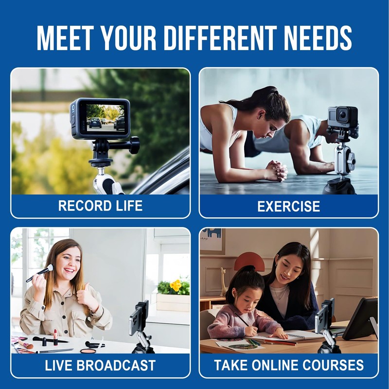 - 【Multi-functional Suction Cup Car Mount】: The suction cup car phone mount is compatible with most smartphones and action cameras. It can be installed on any smooth surface, such as car windows, sunroofs, dashboards, hoods, etc. Crafted with precision, it features a foldable design for easy portability and use. Ideal for scenarios such as mobile driving recording, video capture, selfies, live streaming, watching TV, and online learning.