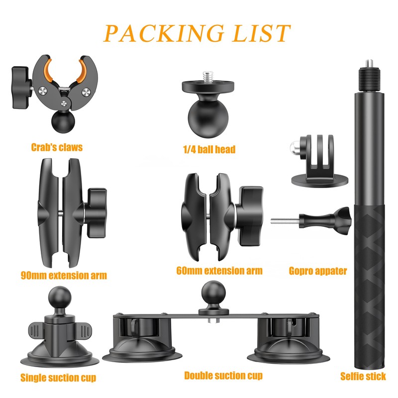 - Superior Quality : Our selfie stick, arm and ball head is made of aluminum alloy material treated by CNC; the suction cup is made of high-quality rubber. Very sturdy and durable, it doesn't wobble even on bumpy roads