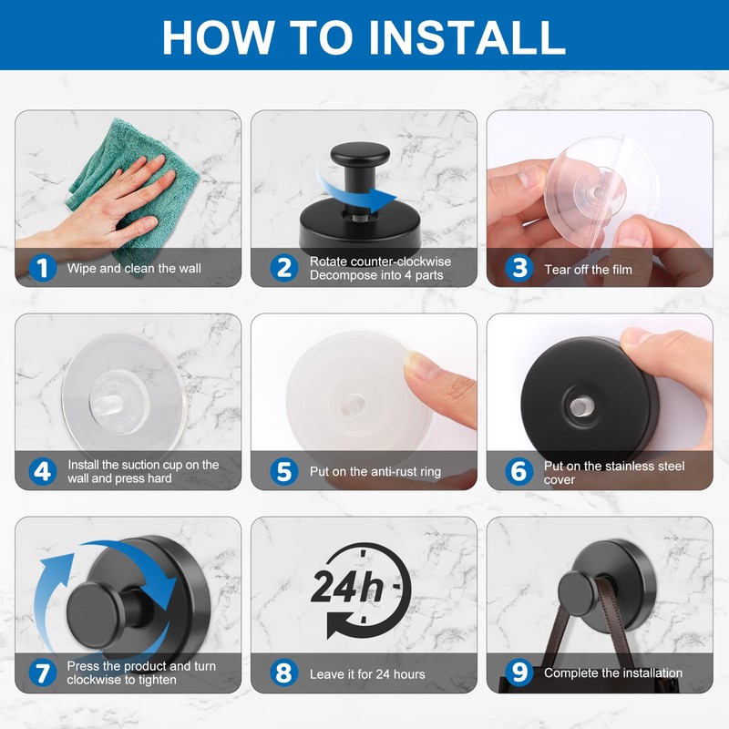 - Removable & Reusable: Easily remove the hooks by loosening the knob and washing the suction base. Once clean and dry, the hooks can be reinstalled in a new location without losing their grip or leaving residue.