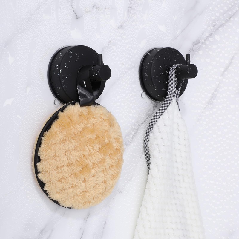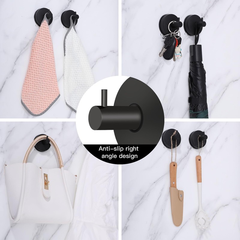 Suction Hooks, 2 Pack Vacuum Suction Cup Hooks for Shower Stainless Steel Shower Hooks Holders Towel Hooks Wall Hanging Hook Heavy Duty Hooks for Bathroom Kitchen(Black)