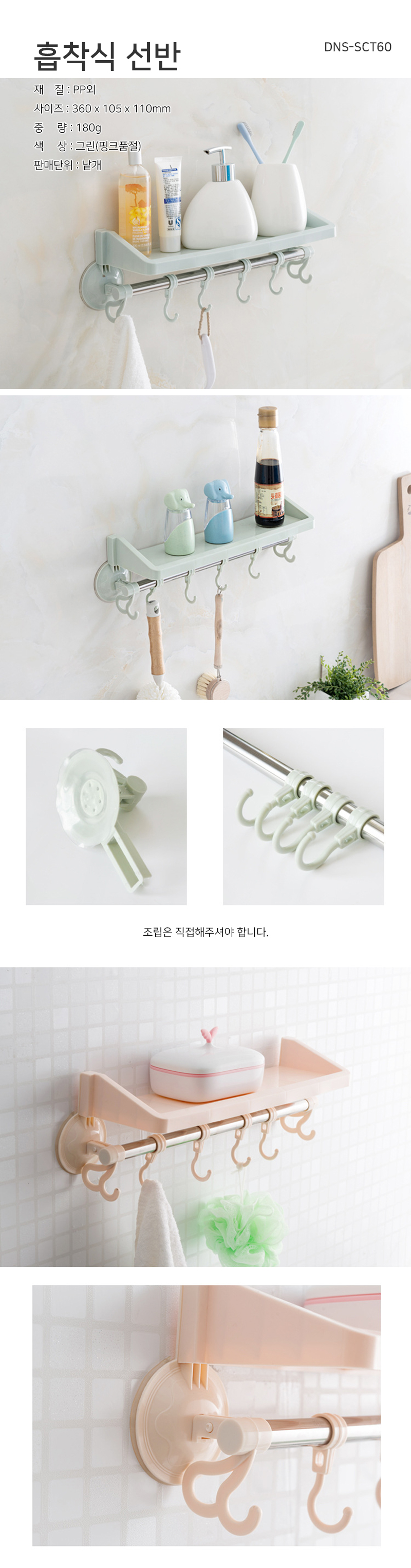 Suction type kitchen shelf hook non-perforated mini bathroom stand green 5ea