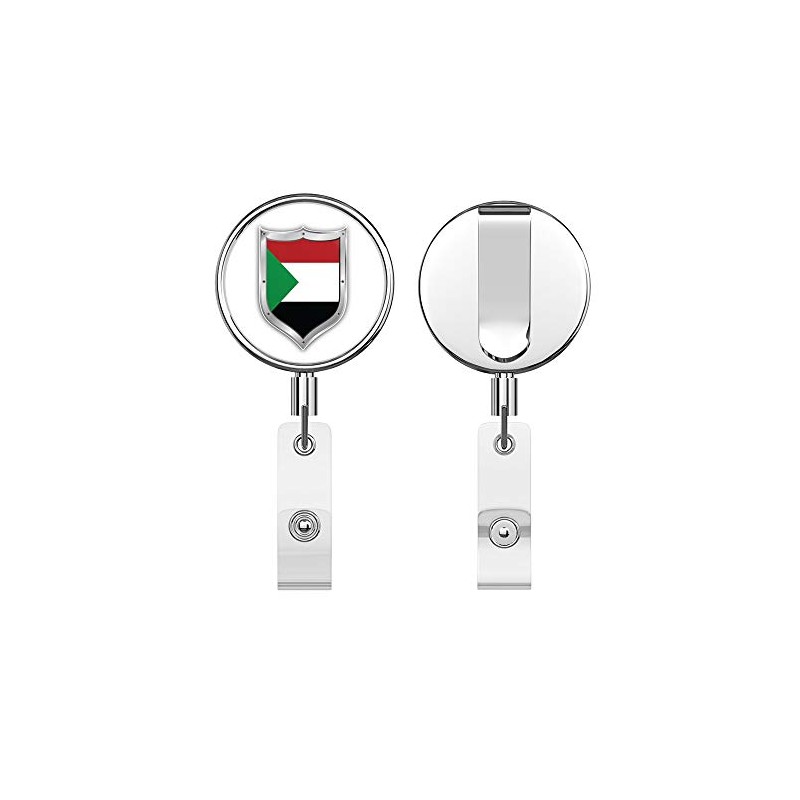 Sudan Shield Flag Round ID Badge Key Card Tag Holder Badge Retractable Reel Badge Holder with Belt Clip