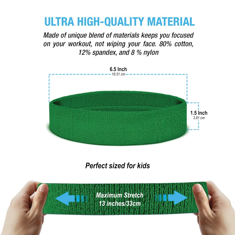 - Bandas versátiles para una variedad de usos: nuestras diademas para niños mantienen eficazmente el cabello fuera de sus caras y manos sin sudor, lo que les permite mantener un agarre sólido en su raqueta, palo de hockey sobre campo, bate o pelota. Estas bandas para la cabeza y la muñeca son perfectas para baloncesto, béisbol, fútbol, softbol y mucho más. También complementan los disfraces y los uniformes del equipo espléndidamente.