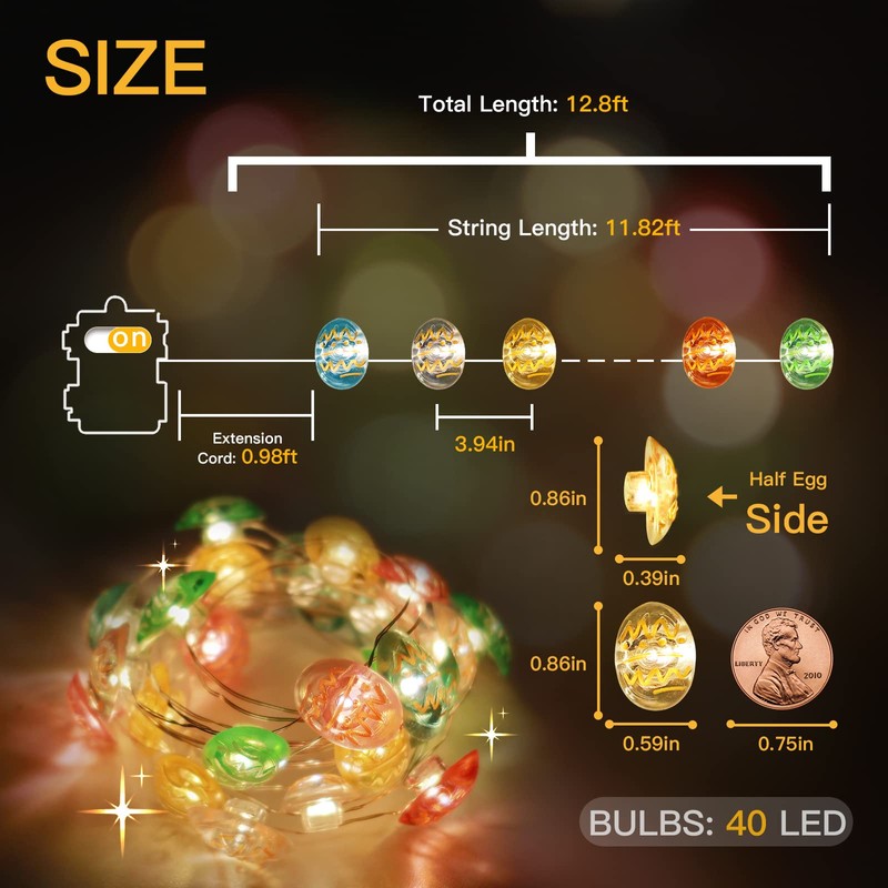 - 🥚[Battery Operated & Timer]: Unlike plug-in lights, Easter led lights are powered by 3AA batteries, which can help you have no worries about places and time limits, and you don't need to consider whether there is electricity or not. Moreover, the timer function can also prevent forgetting to turn off the lights.