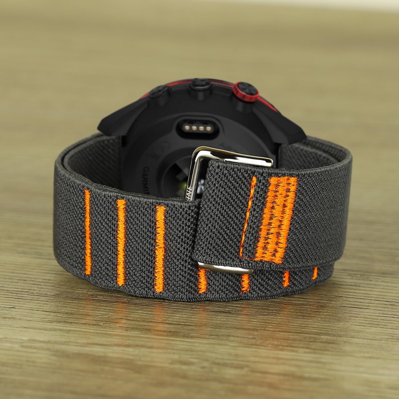 SUDENN Elastic Loop Band compatible with Garmin Watch 18mm 20mm 22mm 26mm Woven Nylon Stretchy G Hook and Loop Strap for Sport Fitness (Dark Grey Orange, Width 22mm / Length S)