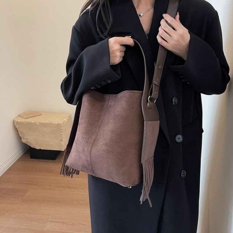Suede Bucket Bags for Women Slouchy Hobo Bags for Women Retro Satchel Tote Bag Suede Handbag Crossbody Bag for Travel Work