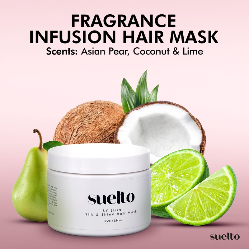 Suelto Silk + Shine Hair Mask Instant Shine Enhancing Hair Mask Formulated with Argan Oil, Sunflower Oil Panthenol, Hydrolyzed Proteins 12 Fl. Oz