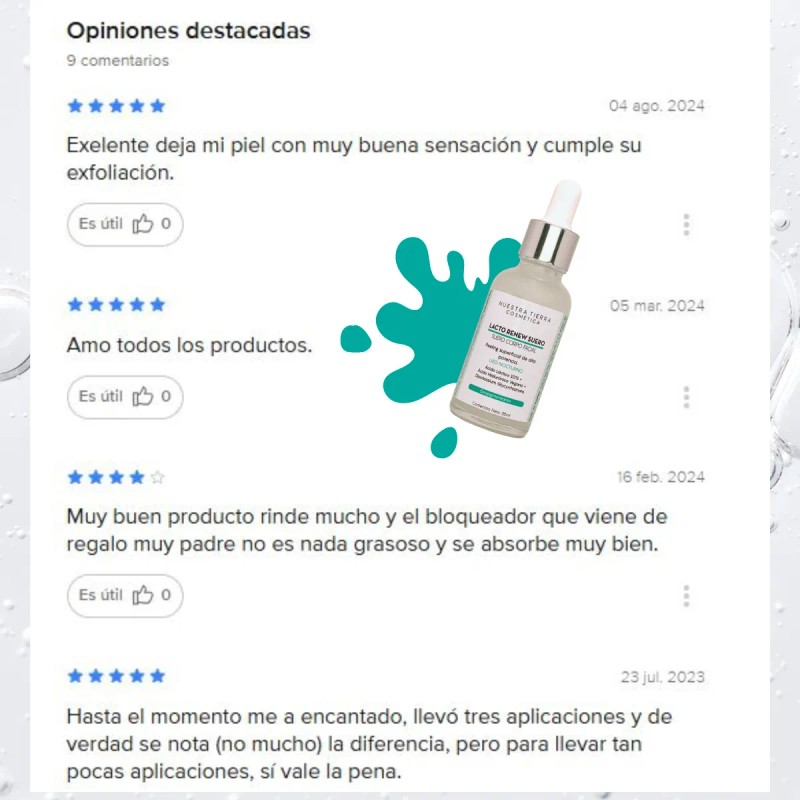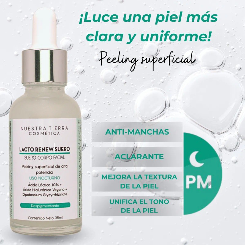 - ¡Aclara, renueva y suaviza tu piel con el Suero de Ácido Láctico 10%! Este suero exfoliante combina el poder del ácido láctico al 10%, optimizado para trabajar en su pH ideal, garantizando su máxima efectividad para renovar la piel, mejorar la textura, unificar el tono y revitalizar desde la primera aplicación.