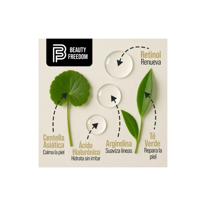 Suero Facial con Retinol, Centella Asiática y Argirelina | Retinol Serum Beauty Freedom 35 ml | Regenera, Suaviza y Unifica la Piel | Antiarrugas, Hidratante y Reparador Nocturno de Textura Ligera