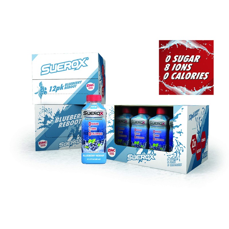 SueroX Zero Sugar Electrolyte Drink for Hydration and Recovery, Blueberry Reboot, 21 Ounce, 12 Count