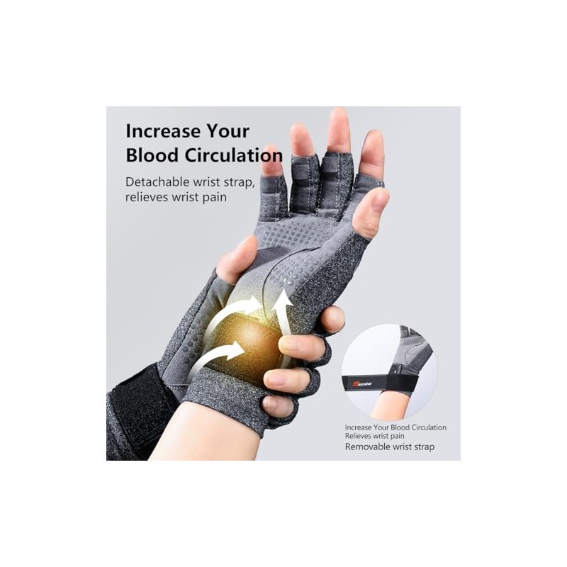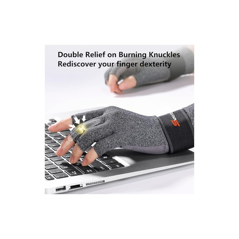 • [Ultra Comfortable & Flexible]: Made with breathable, moisture-wicking fabric, these arthritis pain relief gloves keep your hands cool and comfortable even during overnight wear. The fingerless design ensures full dexterity, so you can easily use your phone, type, cook, or handle daily tasks without limitations.