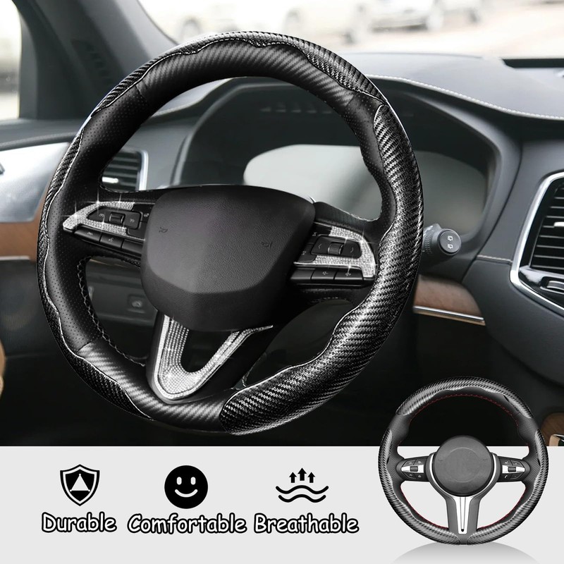 - Carbon Fibre Pattern Finish: Featuring a stylish carbon fibre pattern, these car steering wheel covers instantly upgrades your vehicle’s interior. The elegant design of this steering wheel protector cover is ideal for daily drivers and car enthusiasts alike.