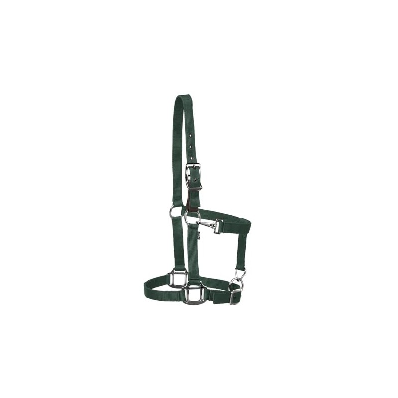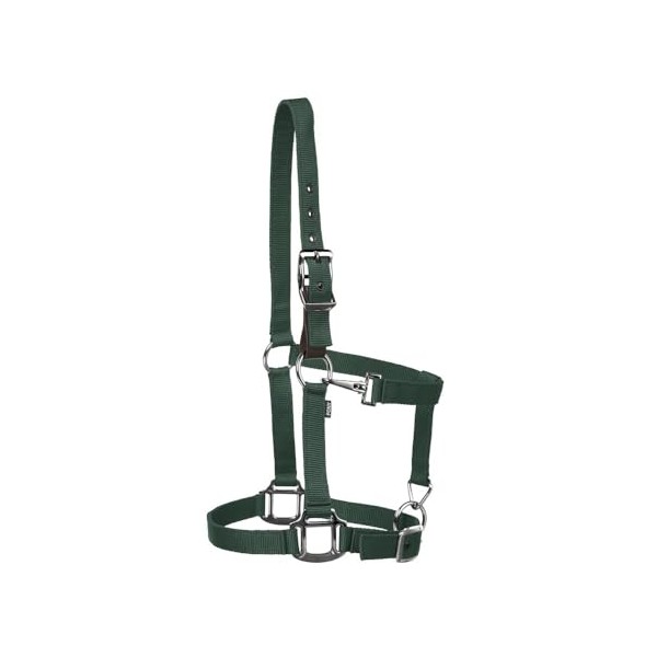 - GREAT VALUE: This double-ply poly nylon web halter has a single-buckle crown adjustable chin and snap throat.