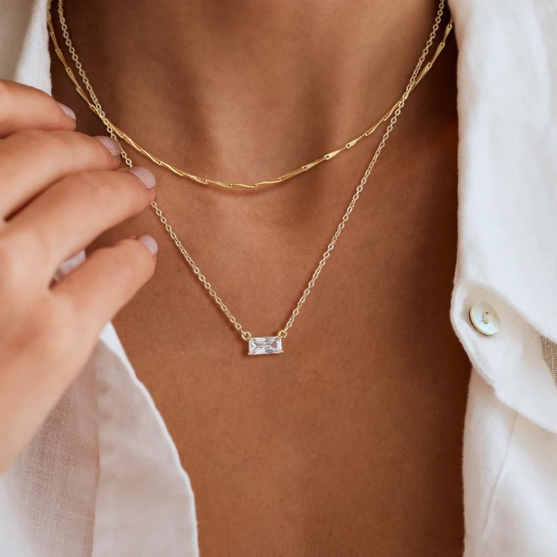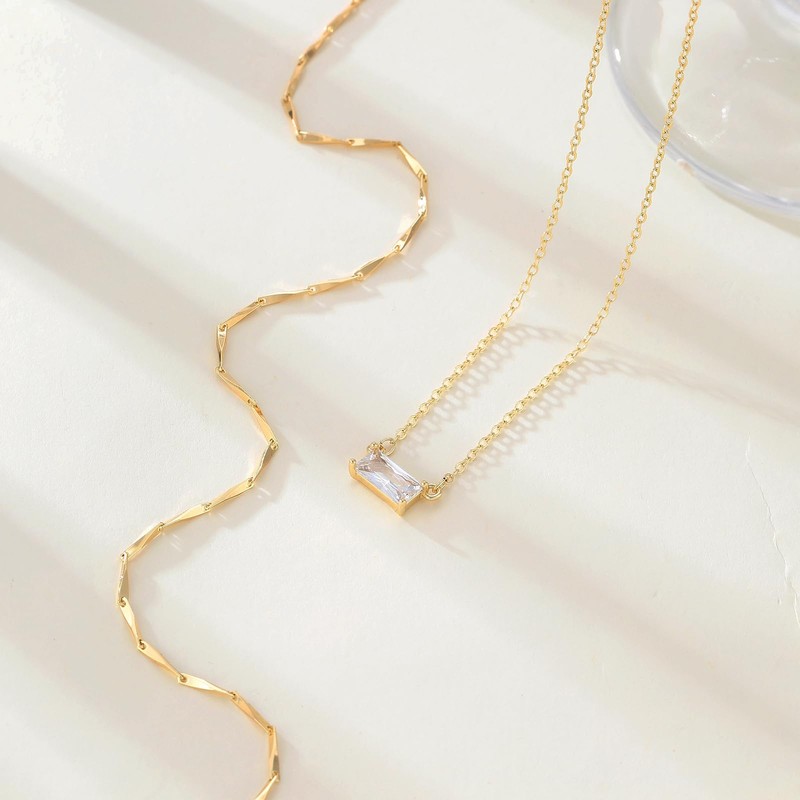 SUFOPE Diamond Necklaces for Women 14K Gold Plated CZ Pendant Necklace Small Square Cubic Zirconia Choker Dainty Sparkling Gold Layered Necklace Jewelry for Gift