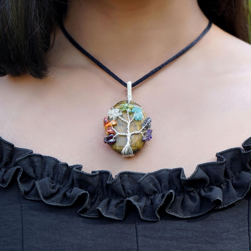 Sugandha Wellness Tiger Eye Healing Crystal Necklace - Strength & Confidence Booster. Tree Of Life Oval Pendant. Promotes Balance & Positive Energy