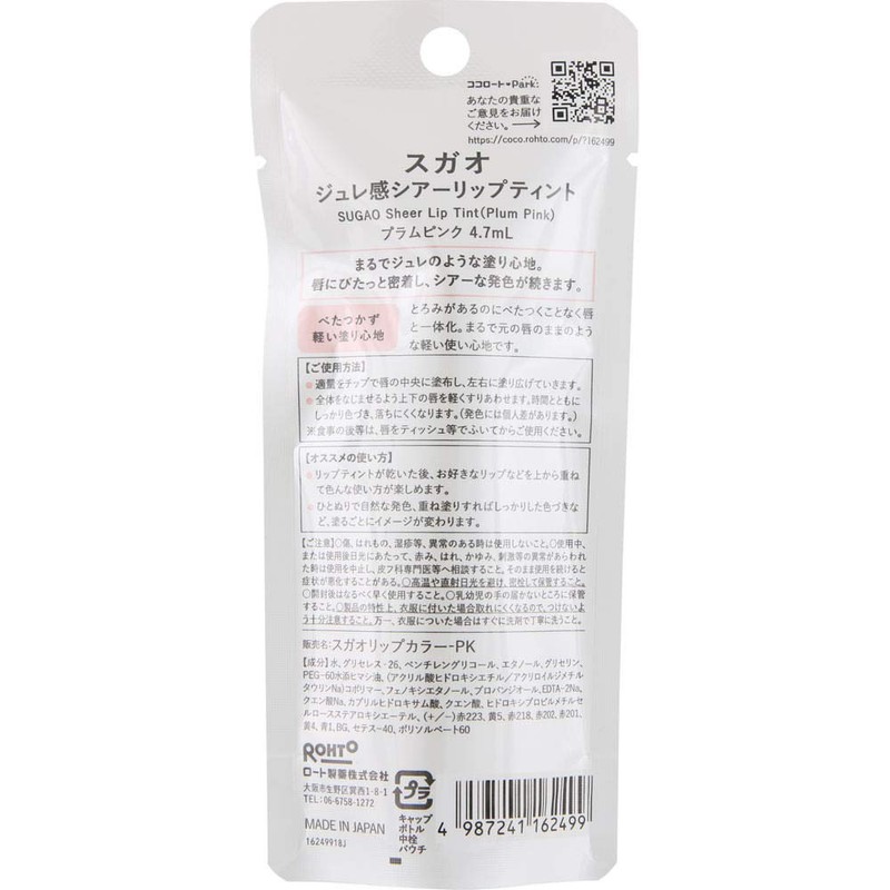 Sugao Jelly Feeling Sheer Lip Tint, Continuous Color, Plum Pink