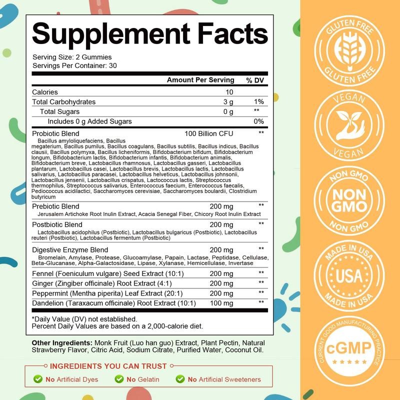 How to Use: Chew two gummies daily to maintain digestive balance, boost immunity, and support overall wellness.