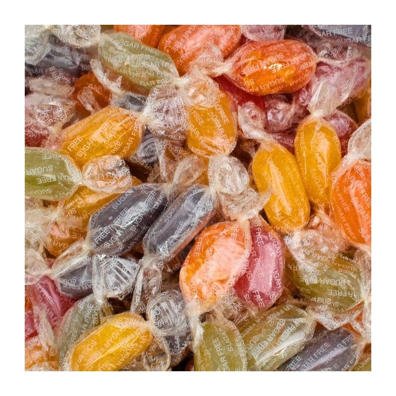 Wrapped sugar free assorted fruit flavoured hard boiled sweets. Suitable for vegetarians.