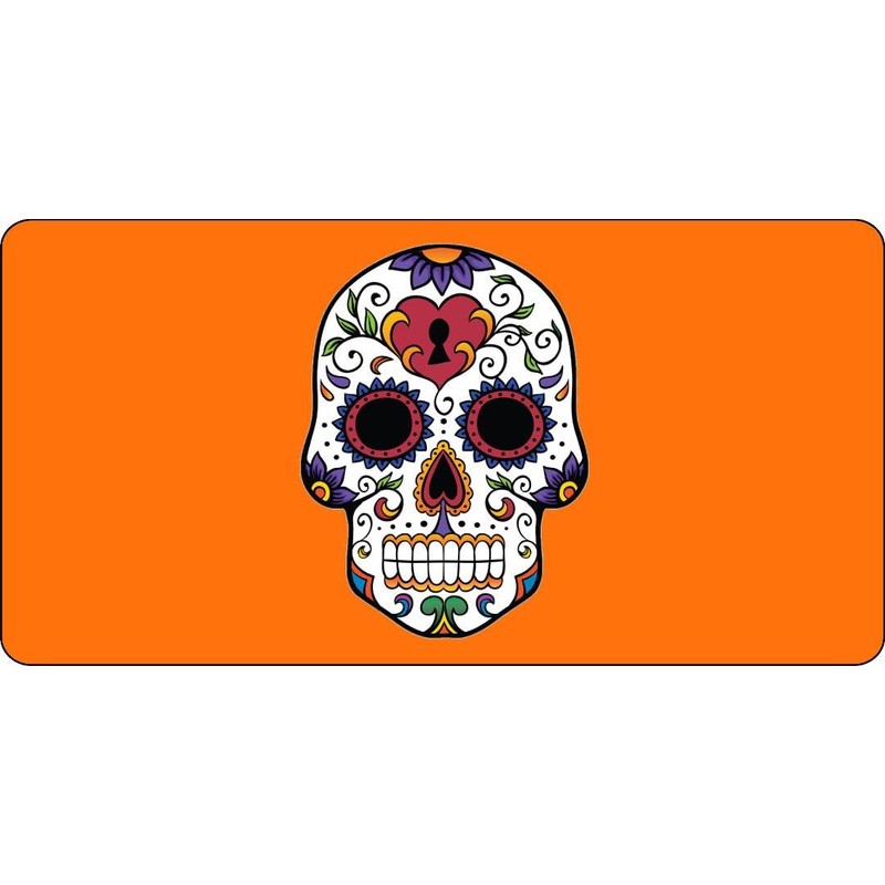 Sugar Skull Design On Orange Photo License Plate