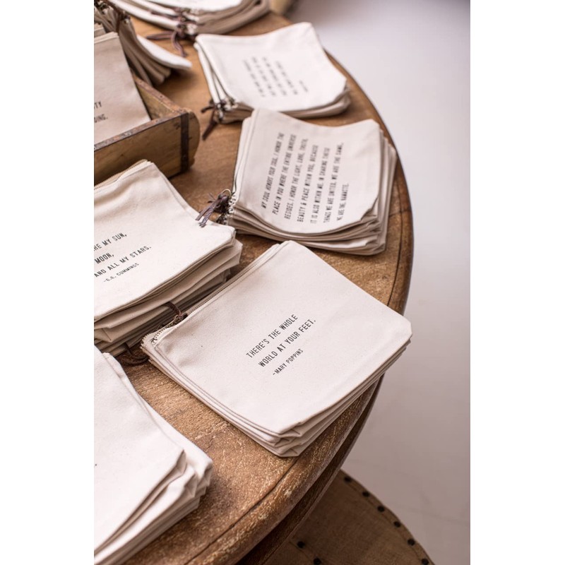 The Sugarboo & Co Small Zip Pouches are perfect for organizing small items in your daily life. The durable fabric is held with a leather zipper tab and decorated with inspirational quotes for your organizing needs. Keep everything in your purse or bag organized with these canvas zippered pouches so you never lose anything again. Whether you plan to use these bags for travel organization or as a canvas makeup bag, we know you’ll find the perfect pouch and quote for you.