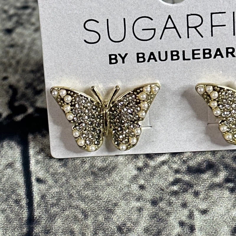 SUGARFIX by BaubleBar Crystal Wings Butterfly Stud Earrings Gold Tone