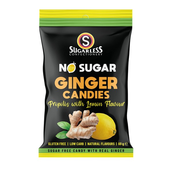 Sugarless Confectionery Sugar Free Ginger Candies Propolis with Lemon Flavour 60g