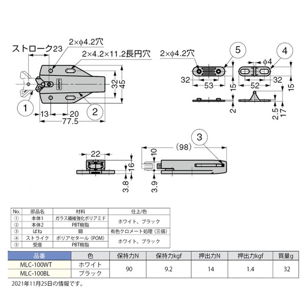 Sugatsune Industries (140033090) MLC-100BL Push Latch MLC100BL