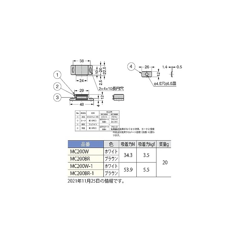 Sugatsune Industries (140058033) MC200BR-1 Magnetic Catch MC200BR1