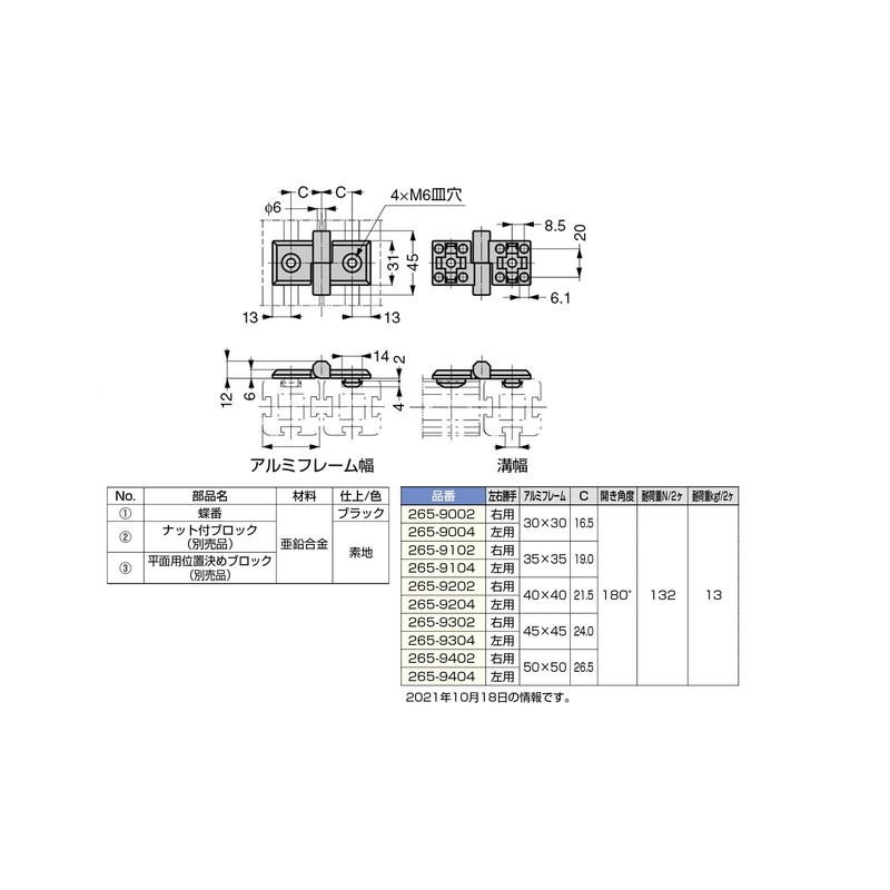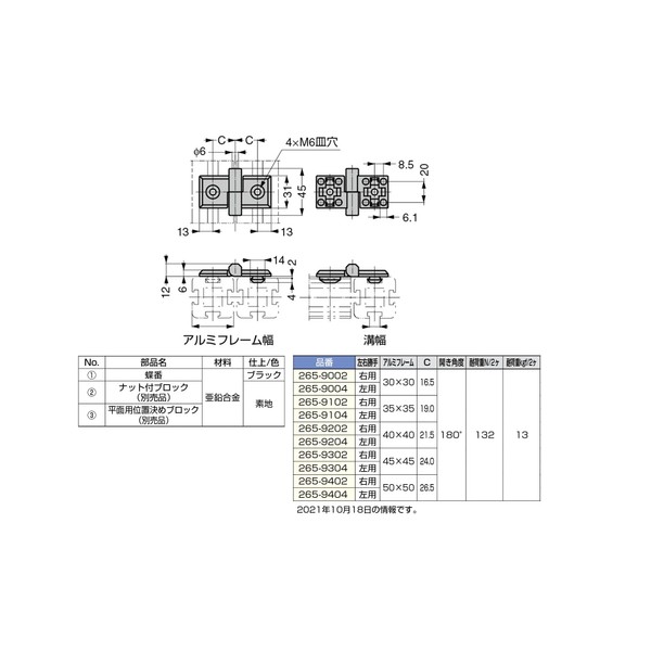 Sugatsune Kogyo 170090886 265-9104 Extractor Hinge for Aluminum Frames
