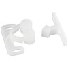 Sugatsune rotary catches and strikes are made from polyacetal which is used in fabricating precision parts requiring high stiffness, low friction and excellent dimensional stability. These durable catches will grab and hold doors tightly and are available in both 3.5 lb and 7 lb pull force versions.