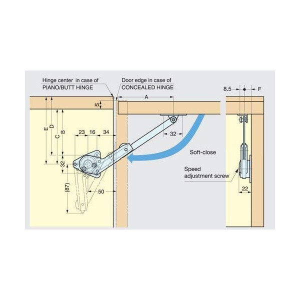 Sugatsune - Lapcon Adjustable Soft Down Lid Stay (NSDX-35LK) - LEFT