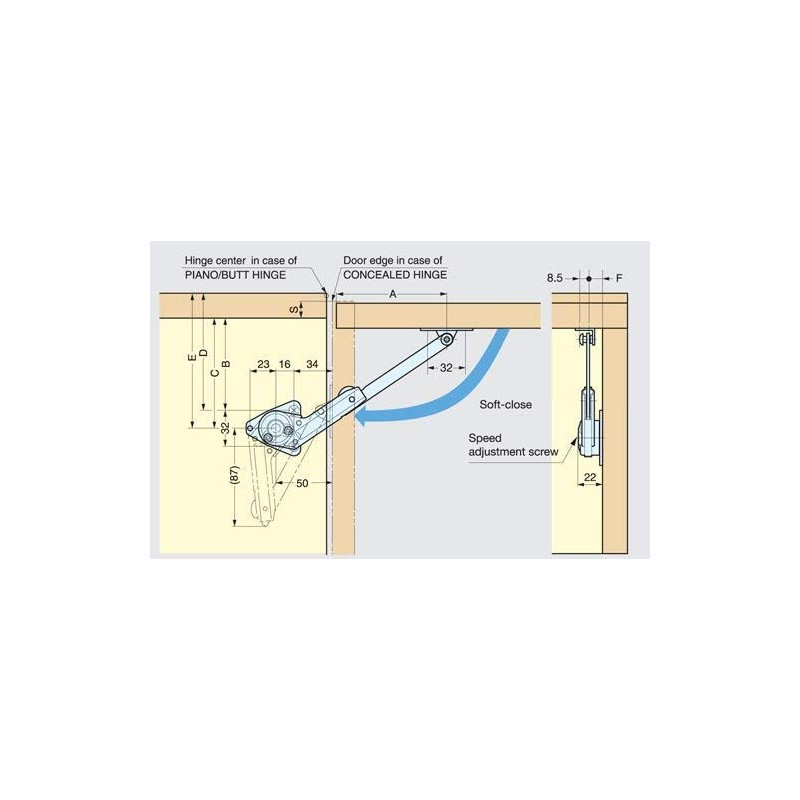 Sugatsune - Lapcon Adjustable Soft Down Lid Stay (NSDX-35LK) - LEFT