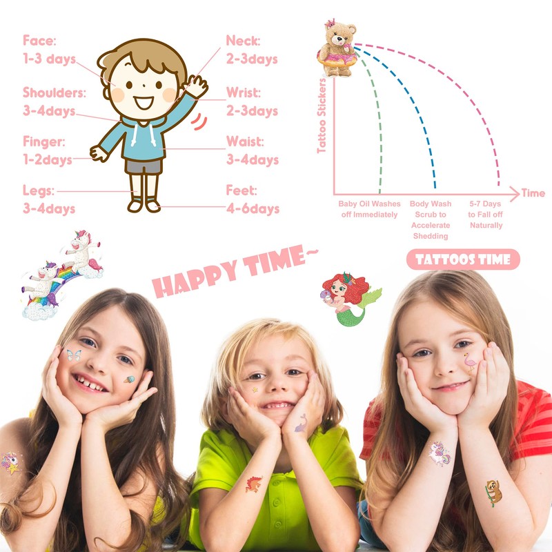 - Make surprises: ideal as a gift for children and guarantees a party highlight at any celebration. The children's tattoos are also very popular as party bags for the little birthday guests - there are 12 sheets, can also be shared with friends. Children's tattoo gift will delight all girls and boys Perfect as a gift idea, party bag, souvenir, gift or birthday gift.