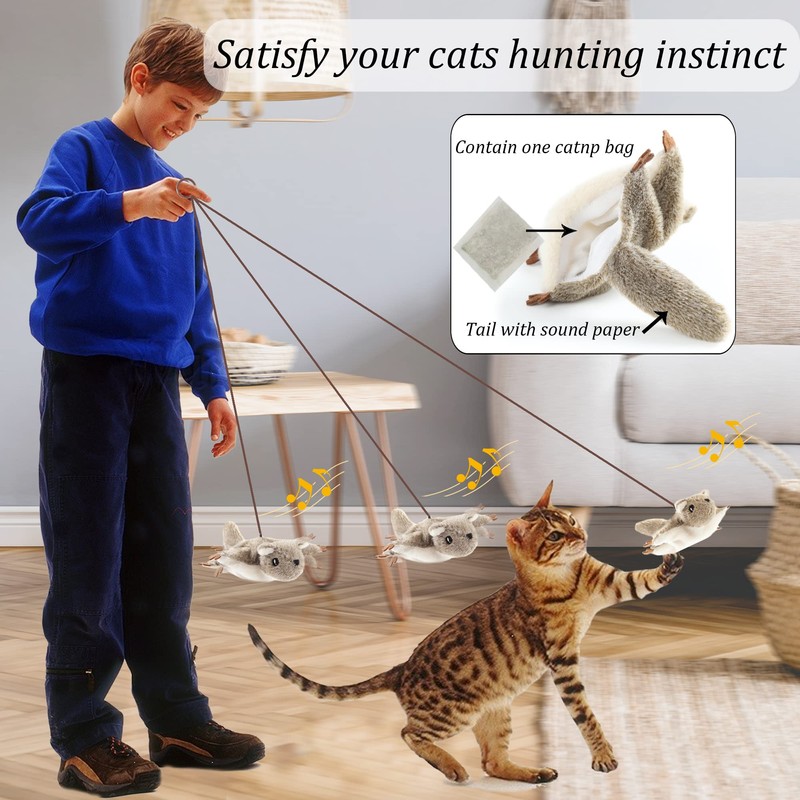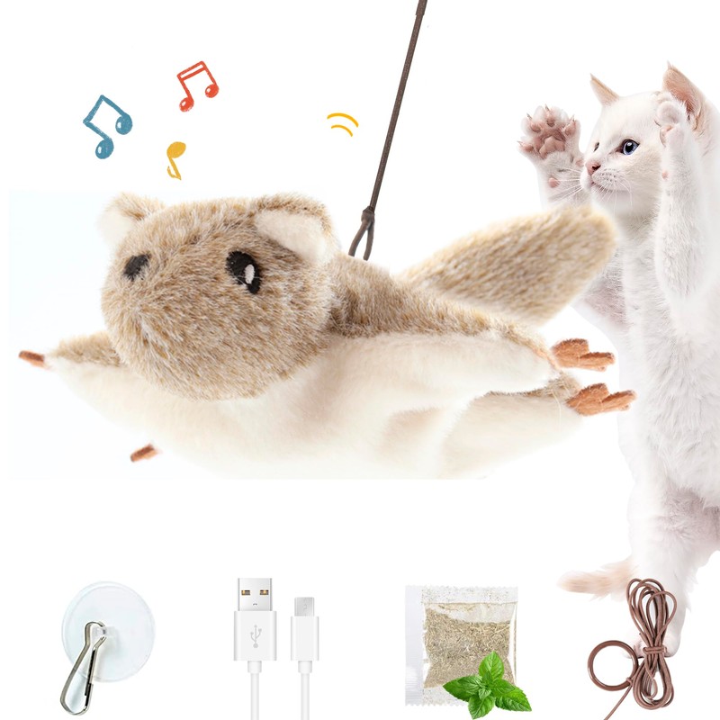- REALISTIC FLYING SQUIRREL SIMULATION - Simulation molding with vivid mouse sound and flapping action make the flying mouse much more realistic which can attract cats' attention, adds realism to cats hunting game. Keep your cat from boredom and promote exercise