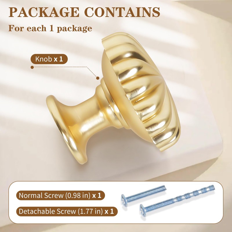 - Measurement: Single Hole Cabinet Knob, Top Diameter: 1.06inch(27mm); Base Diameter: 0.68in (17.3mm); Height: 1.03 inch(23mm); Weight:1.59oz(45g). Every pack comes with 2 screws and they will be individually packaged to maximize the avoidance of bumps during delivery