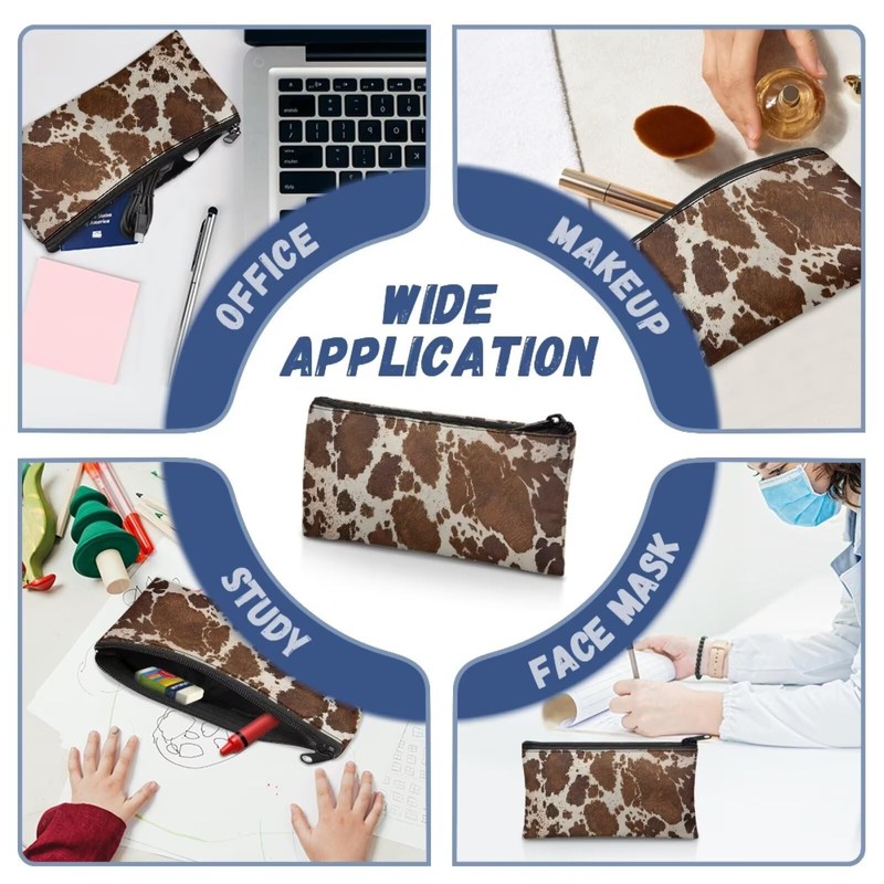 Suhoaziia Brown Cow Print Pencil Case Large Capacity Pencil Pouch Aesthetic for Girls Boys Women Men Pen Bag Office Stationery Organizer Simple Pencil Bag Pencil Organizer Case for Adult Kids