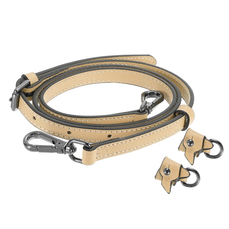 SUIKIHUM Bag Shoulder Strap, (37.4"-45.3" Adjustable Replacement Conversion Kit) Genuine Leather with Metal Black Buckle for Women (Khaki)