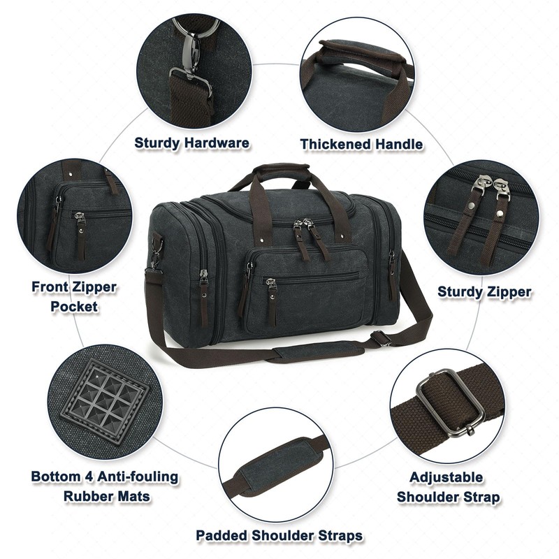 -Quality Material- --Made of canvas material, abrasion, and tear-resistant, flexible zipper for quick opening and closing, the padded base design keeps the contents of the Carry-on Bag protected from rough terrain friction