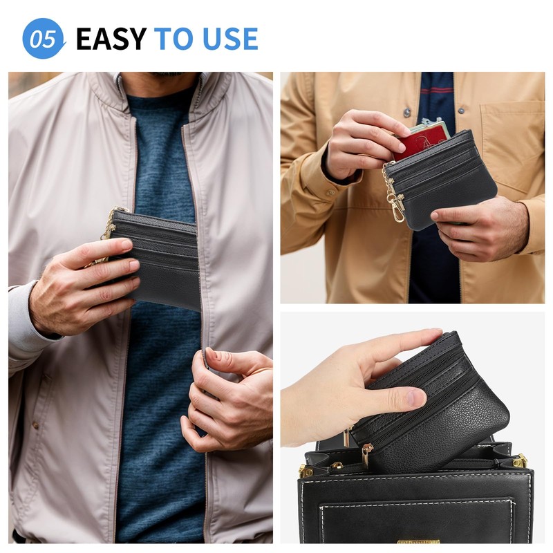 - Good-Quality Leather – This coin purse is made of durable PU leather, which looks very premium and beautiful. Also, this coin purse has exquisite workmanship and good quality zippers.