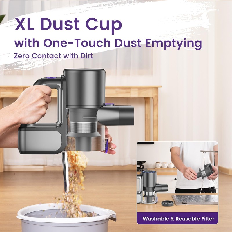 - [HEPA Filtration C Breathe Easy with Clean Air] The cordless vacuum for home features an advanced HEPA filtration system that captures 99.97% of particles. Enjoy cleaner, fresher air with every clean, making it an ideal choice for homes with pets. Breathe easy knowing your vacuum is working hard to improve indoor air quality.