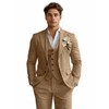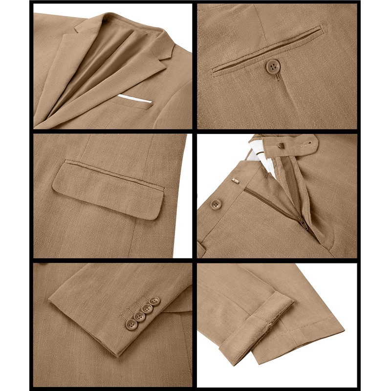 Suits for Men Khaki Linen Mens Wedding Suit Classic Fit 3 Pieces Tuxedo Suit for Formal Business Jacket Vest Pants Sets Xs