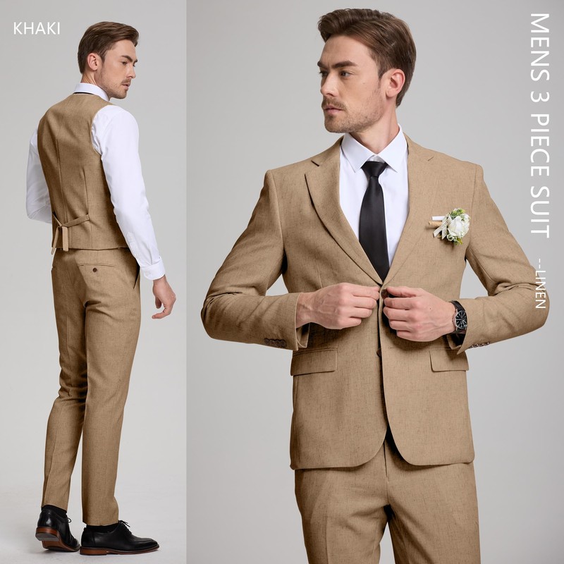 - Mens Suit 3 Piece Set Includes: Solid Blazer Jacket + Suit Vest + Dress Pants.khaki suits for men teens,linen wedding suit for men,mens suits classic fit,mens tux,big and tall suit,young mens suit,business suit.