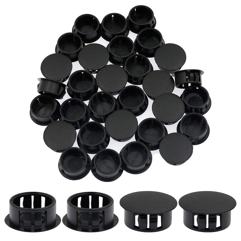 Suiwotin 30PCS 19mm (3/4") Black Hole Plugs Plastic Flush Type Hole Plugs Snap in Locking Hole Tube, Furniture Fencing Post Pipe Insert End Caps (Black)